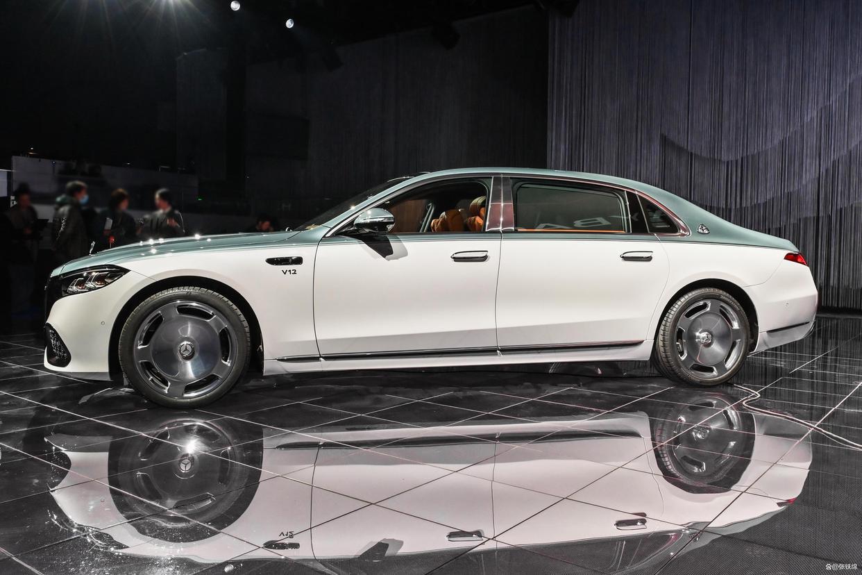 车身侧面部分的整体造型和现款基本一致,使用了全框式车窗镀铬压条,B柱也使用了镀铬装饰,大饼风格的轮毂很抢眼。尺寸方面,新款迈巴赫S级车身加长14mm,达到5484mm,车身宽度、高度和轴距保持不变。