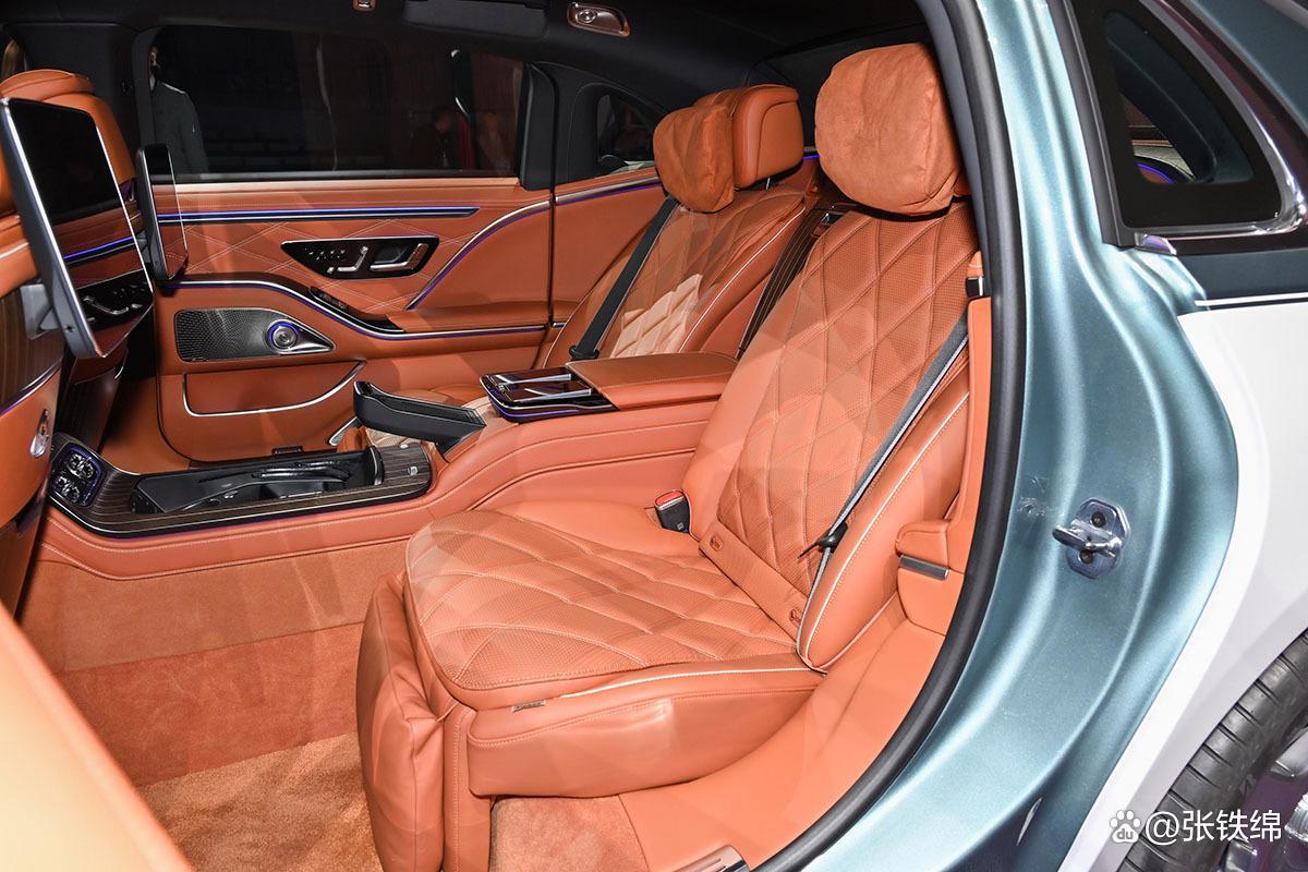 新款车型继续提供4座和5座版本,后排提供了双13.1英寸显示屏,4座版的后排座椅可实现19°至43.5°的大范围角度调节。另外新款车型的前排还使用了加热式安全带,全车搭载15个安全气囊,并额外搭配2个PRE-SAFE侧碰保护气囊及2个后排安全带气囊。